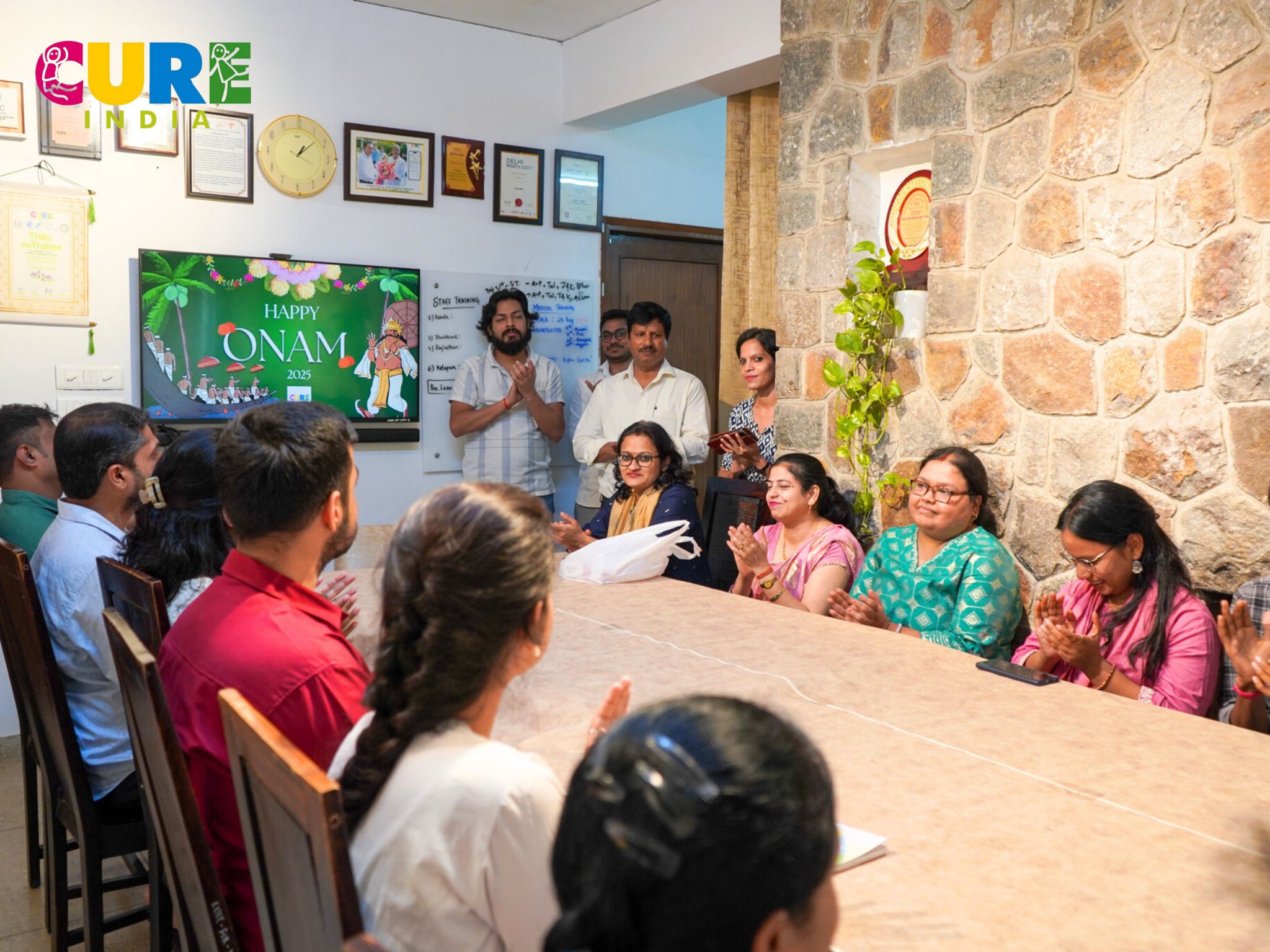 Today, our National Office came alive with the vibrant spirit of Onam! The CURE India Onam Celebration was a beautiful pause in our relentless mission, offering a moment to reflect on our journey. From the traditional Onam Sadhya, with its twenty-plus flavorful dishes, to the pure joy of togetherness, it was a celebration of culture, unity, and deep gratitude. This communal event, steeped in the rich traditions of Kerala, underscored the diverse but unified spirit of the CURE India Family—a team drawn from every corner of the country, working toward one singular vision of a Clubfoot-Free India. We were particularly honoured to have Mr. Chandra Mohan, a prominent writer at Financial Times, India, join us for the festivities, a gesture that highlights the growing public interest and support for the crucial work being done in child health.