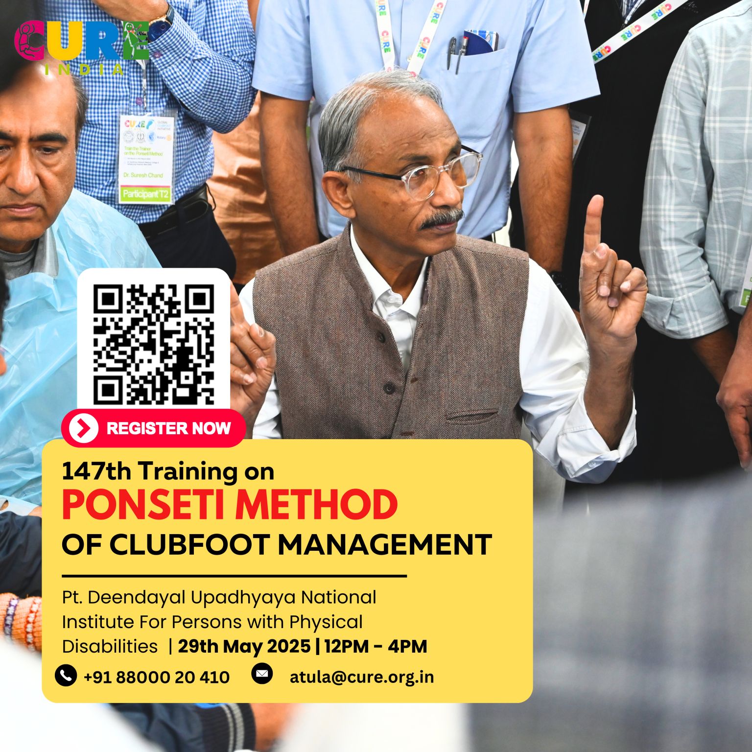 At CURE India, our commitment to a Clubfoot-Free India is powered by a dual approach: providing direct, life-changing treatment and empowering the medical community with the knowledge to make a difference. We are proud to announce a significant milestone in this mission: the successful hosting of our 147th Training on the Ponseti Method for Clubfoot Management. This landmark event, held on May 29, 2025, at the Pt. Deendayal Upadhyaya National Institute for Persons with Physical Disabilities, reinforces our dedication to capacity building and widespread impact.